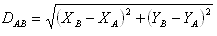 Din coordonate determinăm distanţa şi orientarea între punctele vechi A şi B: