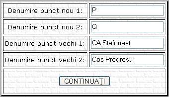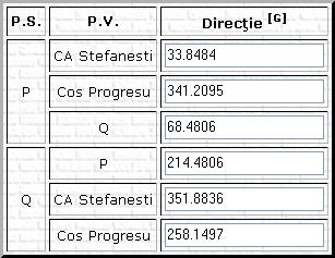 În acest exemplu sunt determinate coordonatele a două puncte noi (P şi Q), prin intermediul procedeului Hansen.